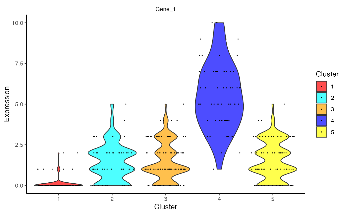 data(celdaCGSim, celdaCGMod) plotCeldaViolin(x = celdaCGSim$counts, celdaMod = celdaCGMod, features = "Gene_1")