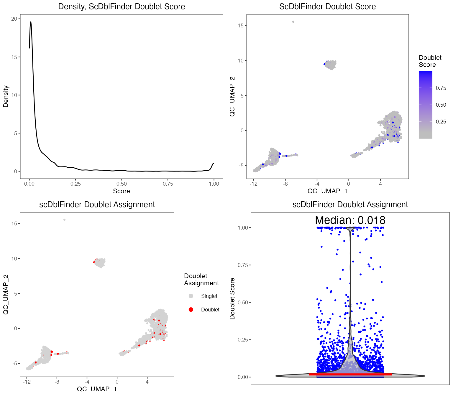 plotScDblFinderResults(sce, reducedDimName = "QC_UMAP")
