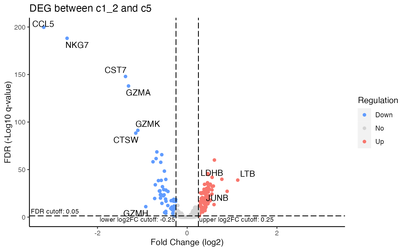 plotDEGVolcano(sce, useResult = "c1_2_VS_c5")