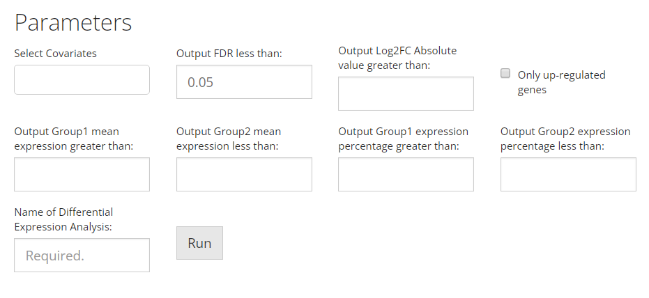 NOTE that the “Name of Condition” fields are always required. It is highly recommended that users put easily understandable names there, in order to avoid the confusion when multiple sets of analyses are performed, and to keep the automatic legends on DE specific plots clean as well.