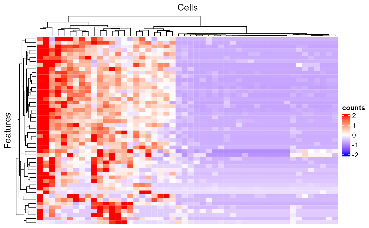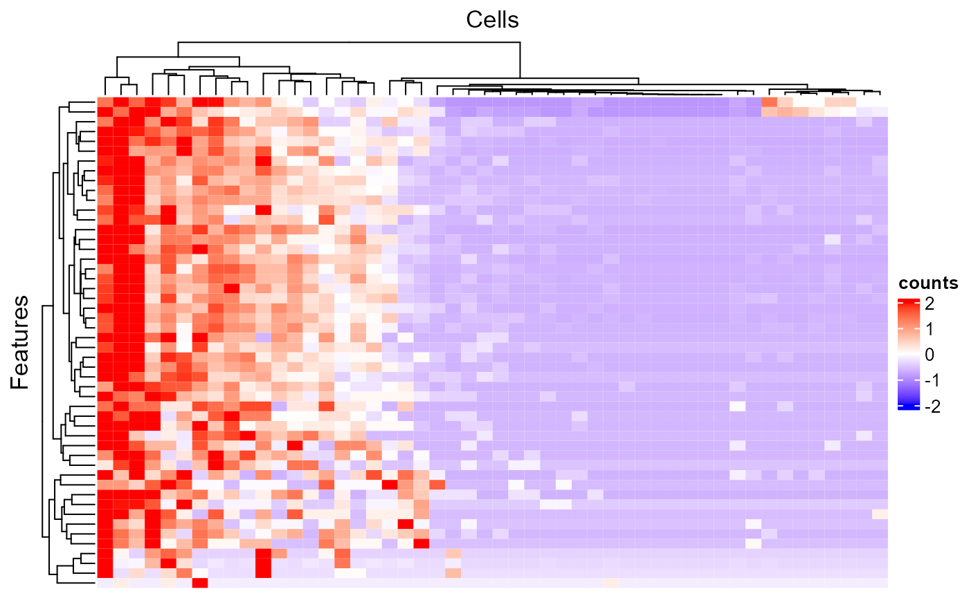 3. Dendrograms The dendrograms for features or cells can be removed by passing FALSE to rowDend or colDend.