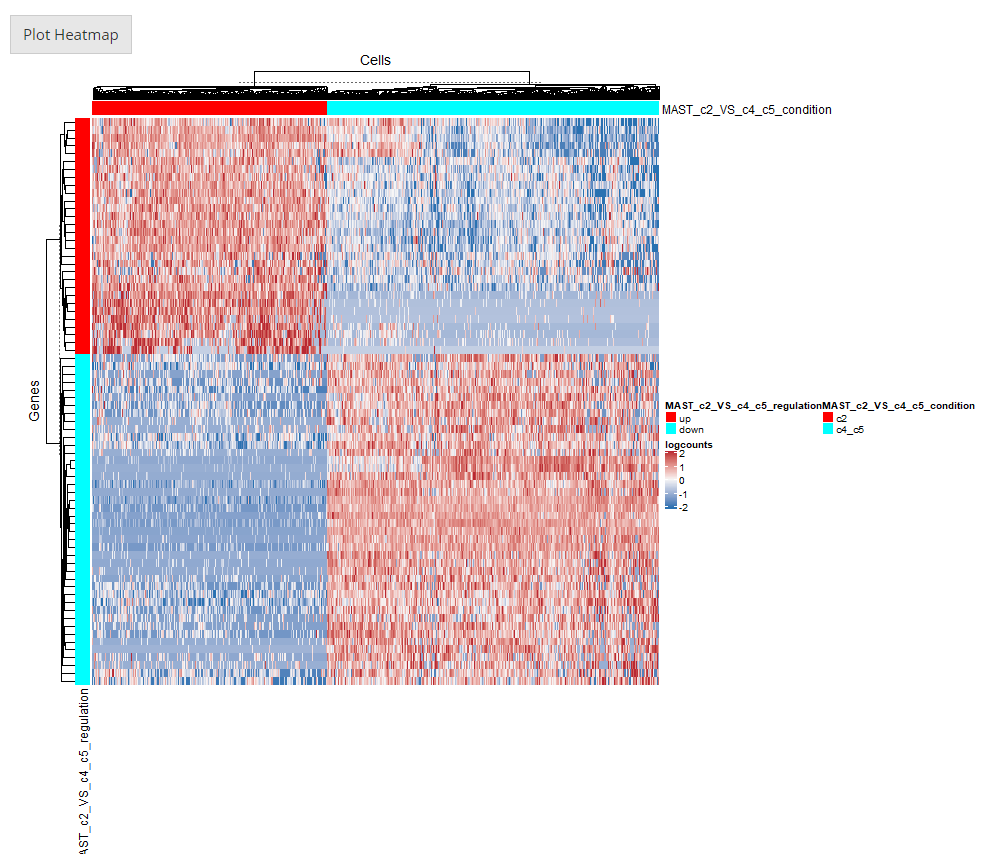 The documentation above is for the general usage of SCTK Heatmap page. While heatmap is an important visualization method for many types of analysis, SCTK allows importing some types analysis results. Currently, DE analysis and marker detection results are supported. Here, we will present an example of importing the DE analysis result.
