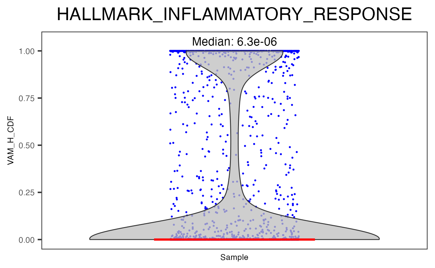 plotPathway(sce, resultName = "VAM_H_CDF", geneset = "HALLMARK_INFLAMMATORY_RESPONSE")