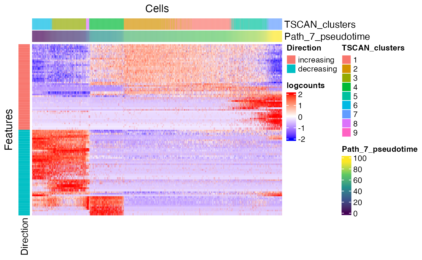 plotTSCANPseudotimeGenes(sce, pathIndex = 7, direction = "increasing")