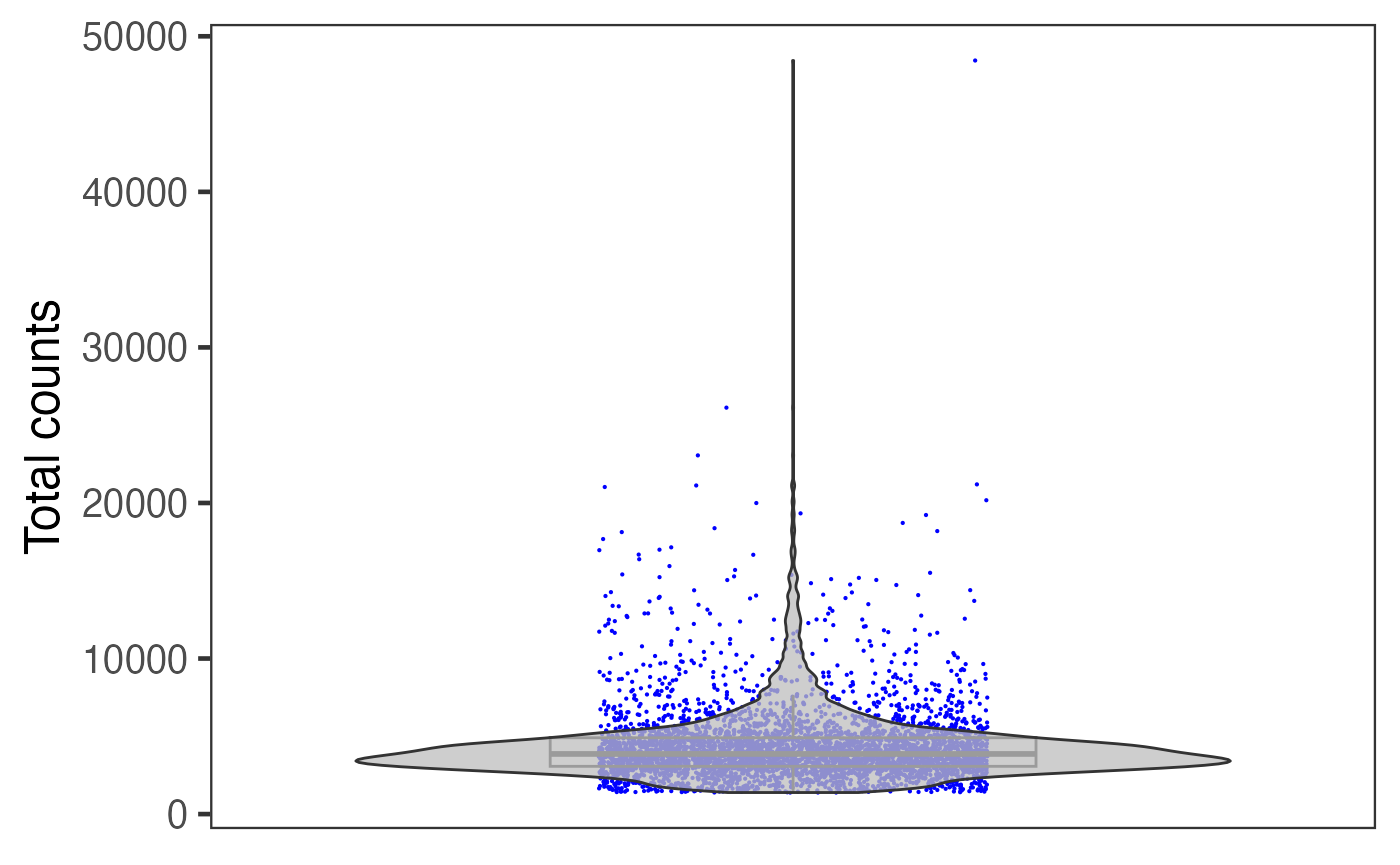 plotSCEViolinColData(inSCE = sce, coldata = "total", sample = sce$sample, ylab = "Total counts")