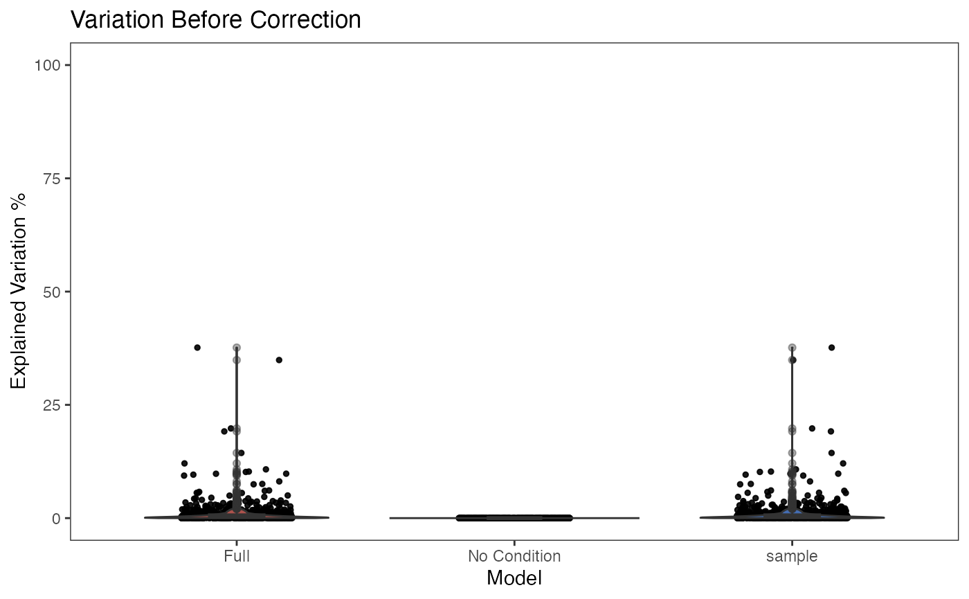 plotBatchVariance(inSCE = sce.small, useAssay = 'logcounts', batch = 'sample', title = 'Variation Before Correction')