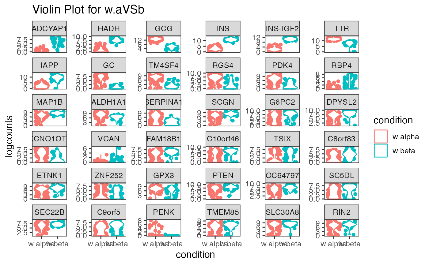 sce.w <- runWilcox(sce.w, class = "cell_type", classGroup1 = "alpha",