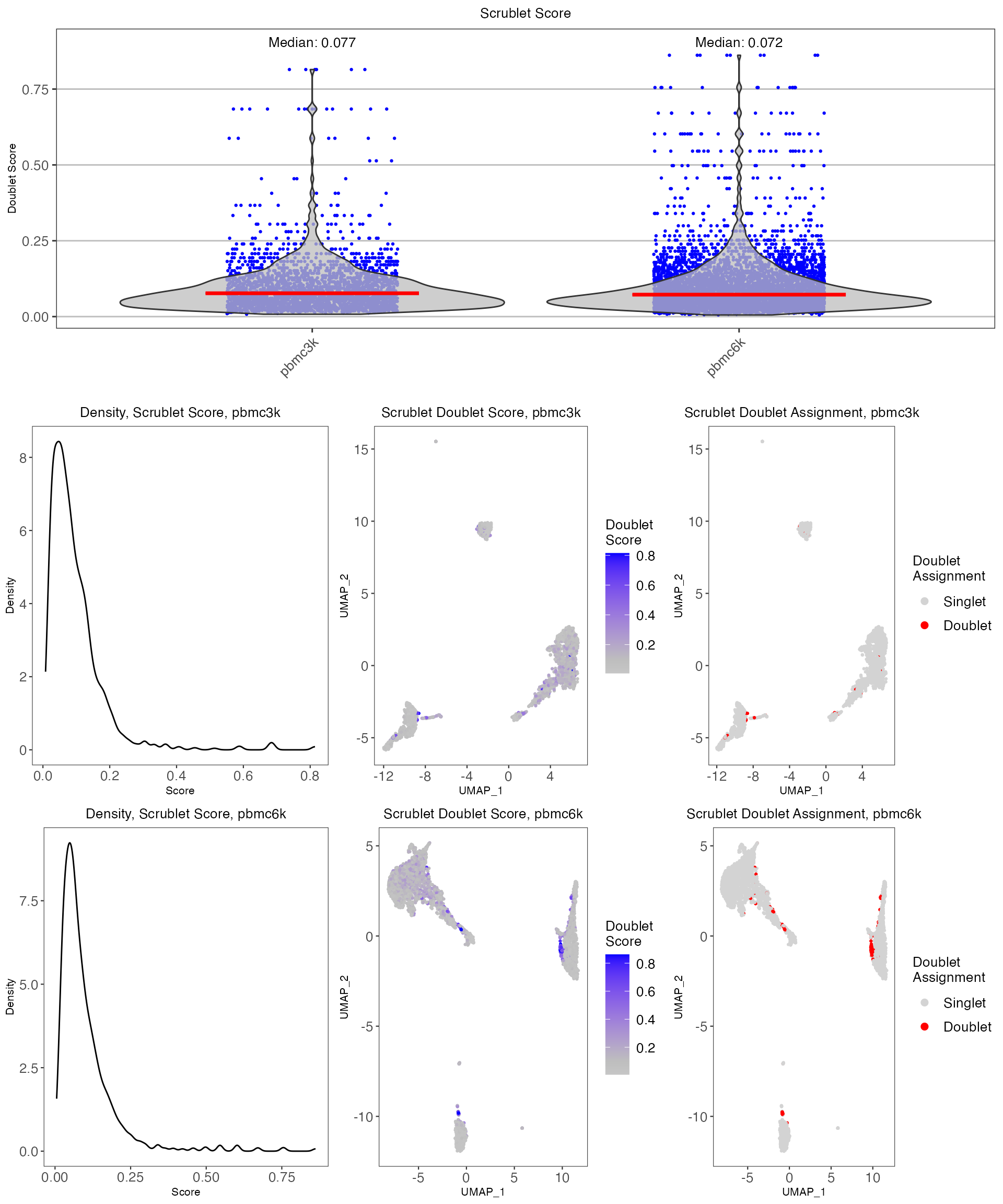 pbmc.combined <- runQuickUMAP(pbmc.combined)All of the droplet-based QC algorithms are able to be run under the