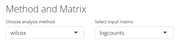 As mentioned in the Introduction section above, totally five methods are available from SCTK UI, including: Wilcoxon, MAST, Limma, DESeq2 and ANOVA. Users can choose the preferred one from the selection input “Choose analysis method”, as shown in the screenshot below.