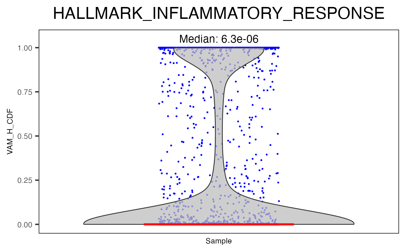 plotPathway(sce, resultName = "VAM_H_CDF", geneset = "HALLMARK_INFLAMMATORY_RESPONSE")