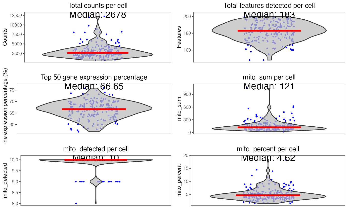 #> Fri Feb 2 14:19:32 2024 ...... Attempting to find mitochondrial genes by identifying features in 'rownames' that match mitochondrial genes from reference 'human' and ID type 'ensembl'.