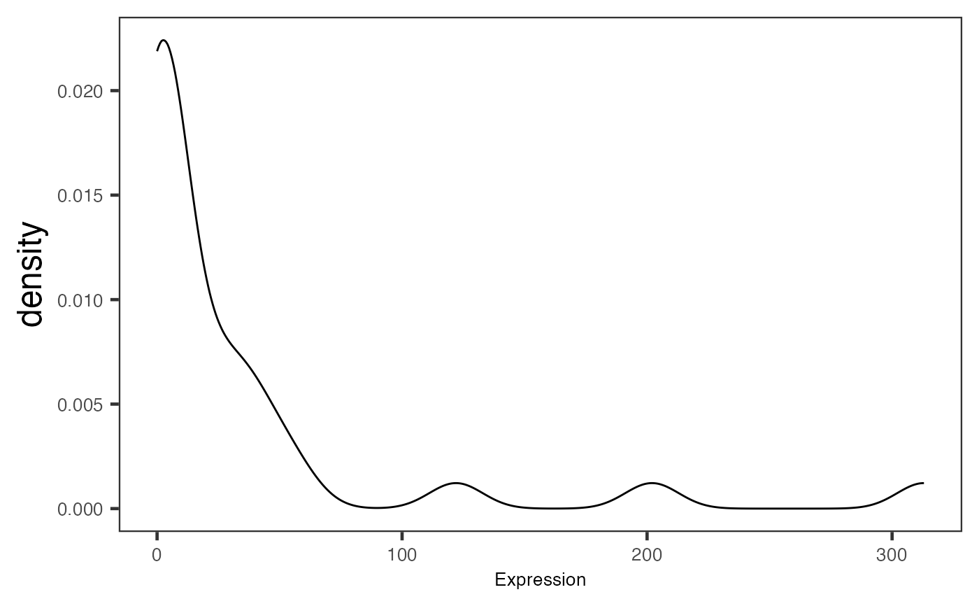 Visualizes values stored in the assay slot of a SingleCellExperiment object via a density plot.