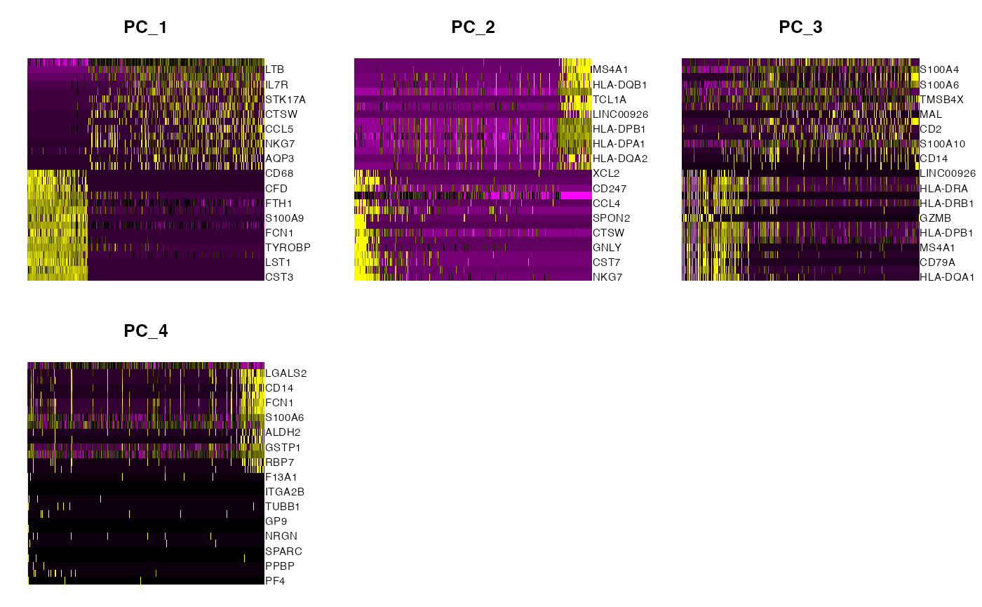 standard ‘PCA Plot’, ‘Elbow Plot’, ‘Jackstraw Plot’ and ‘Heatmap