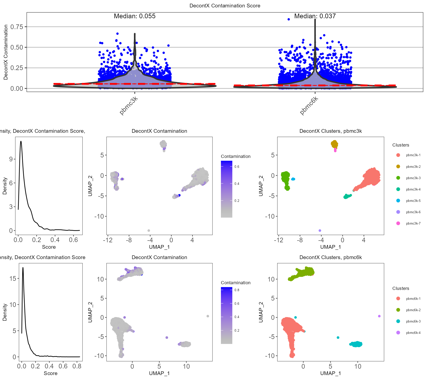 | decontX_contamination | Ambient RNA contamination | runDecontX | celda |
