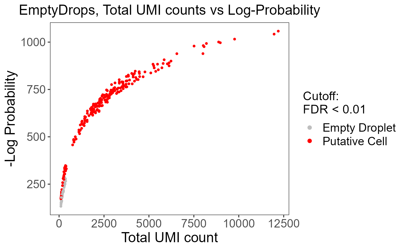 #>plotEmptyDropsResults(inSCE=sce)#> $scatterEmptyDrops#>