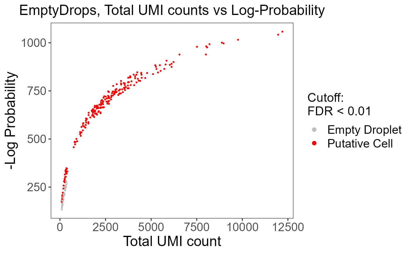 #>plotEmptyDropsResults(inSCE=sce)#> $scatterEmptyDrops#>