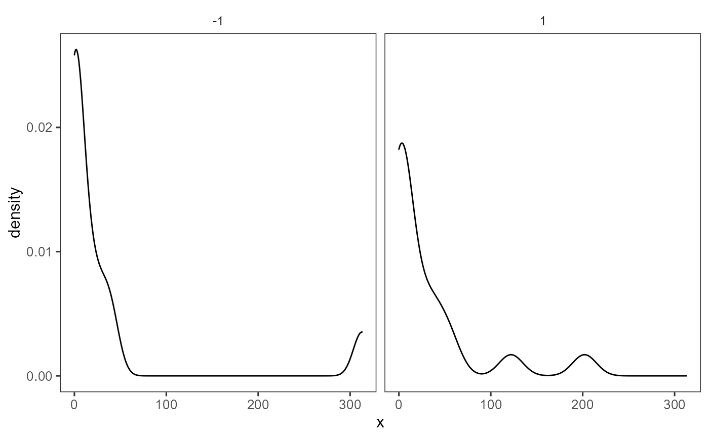 plotSCEDensity( inSCE = mouseBrainSubsetSCE, slotName = "assays", itemName = "counts", feature = "Apoe", groupBy = "sex" )