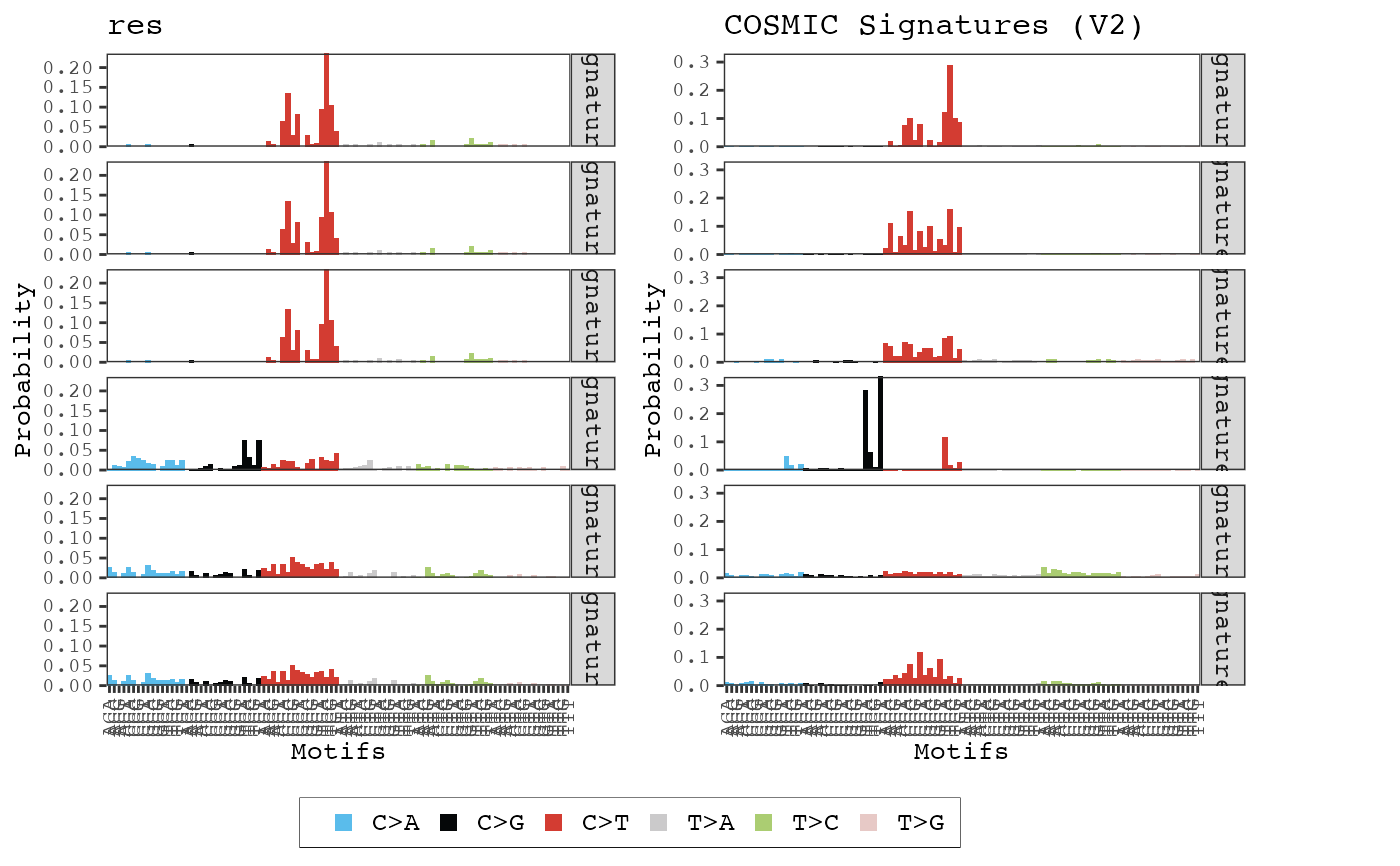 #> cosine x_sig_index y_sig_index x_sig_name y_sig_name #> 4 0.9742418 3 7 Signature3 Signature7 #> 5 0.7730161 3 11 Signature3 Signature11 #> 6 0.7568463 3 30 Signature3 Signature30 #> 1 0.7337470 1 13 Signature1 Signature13 #> 2 0.7296889 2 5 Signature2 Signature5 #> 3 0.7107142 2 19 Signature2 Signature19