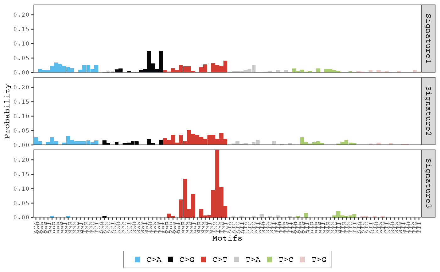 plot_signatures( result, legend = TRUE, plotly = FALSE, color_variable = NULL, color_mapping = NULL, text_size = 10, facet_size = 10, show_x_labels = TRUE, same_scale = TRUE )
