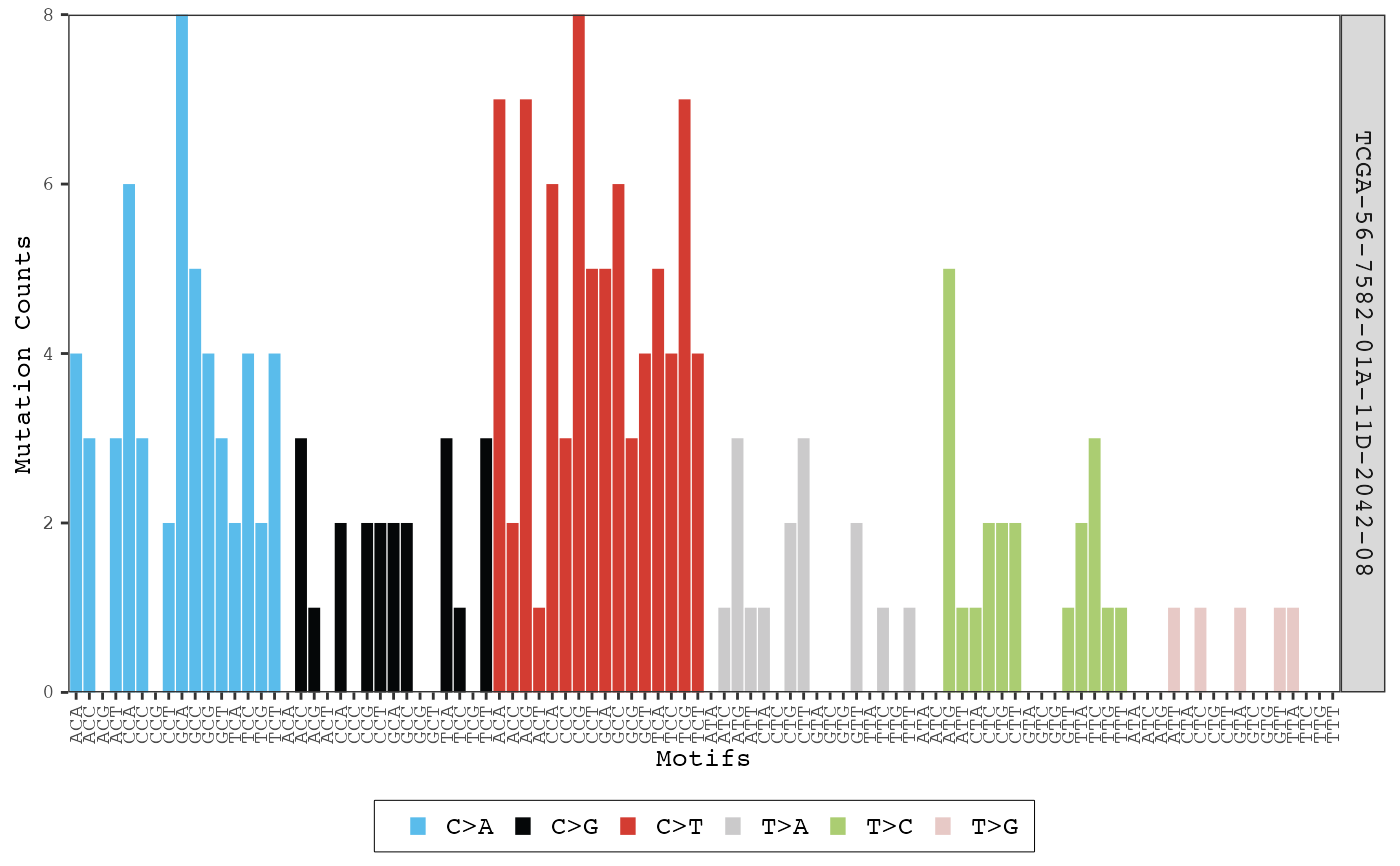 data(musica_sbs96) plot_sample_counts(musica_sbs96, sample_names = sample_names(musica_sbs96)[1])![]()