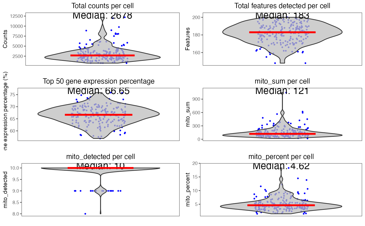 #> Wed Jul 26 13:00:43 2023 ...... Attempting to find mitochondrial genes by identifying features in 'rownames' that match mitochondrial genes from reference 'human' and ID type 'ensembl'.