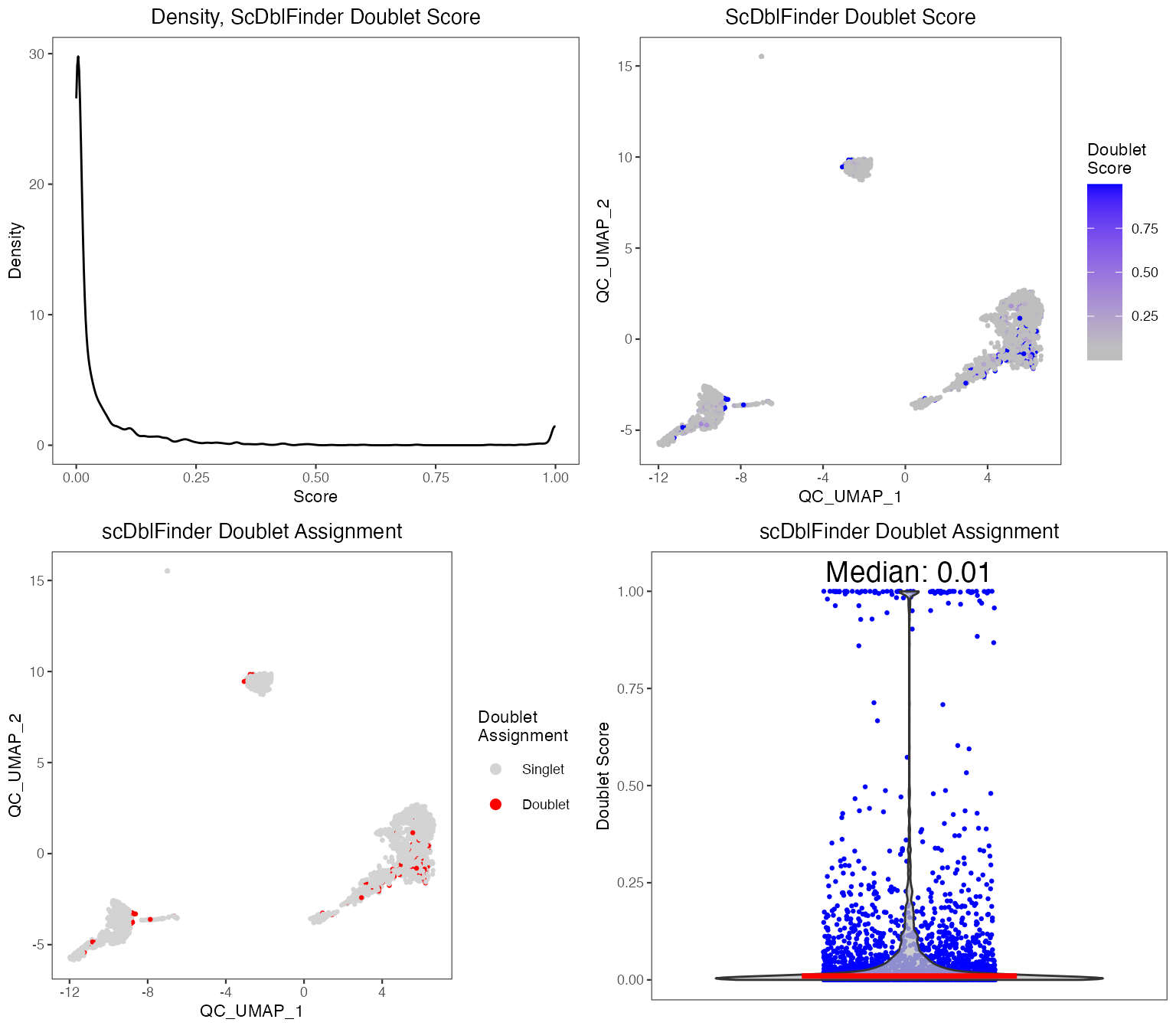 plotScDblFinderResults(sce, reducedDimName = "QC_UMAP")
