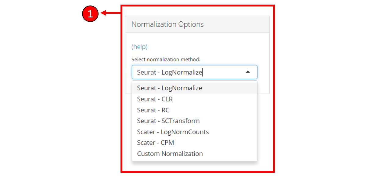 2a. Options when a normalization method from a particular package is selected: