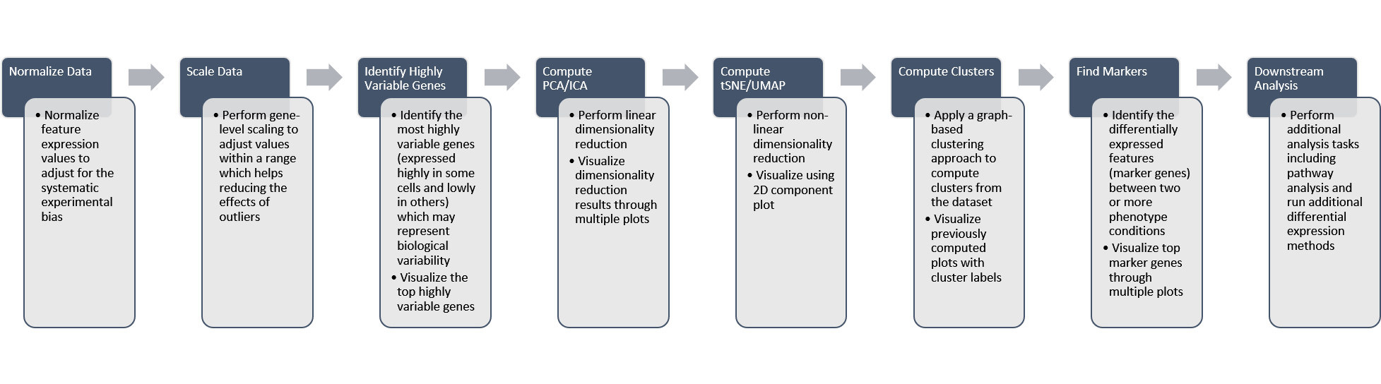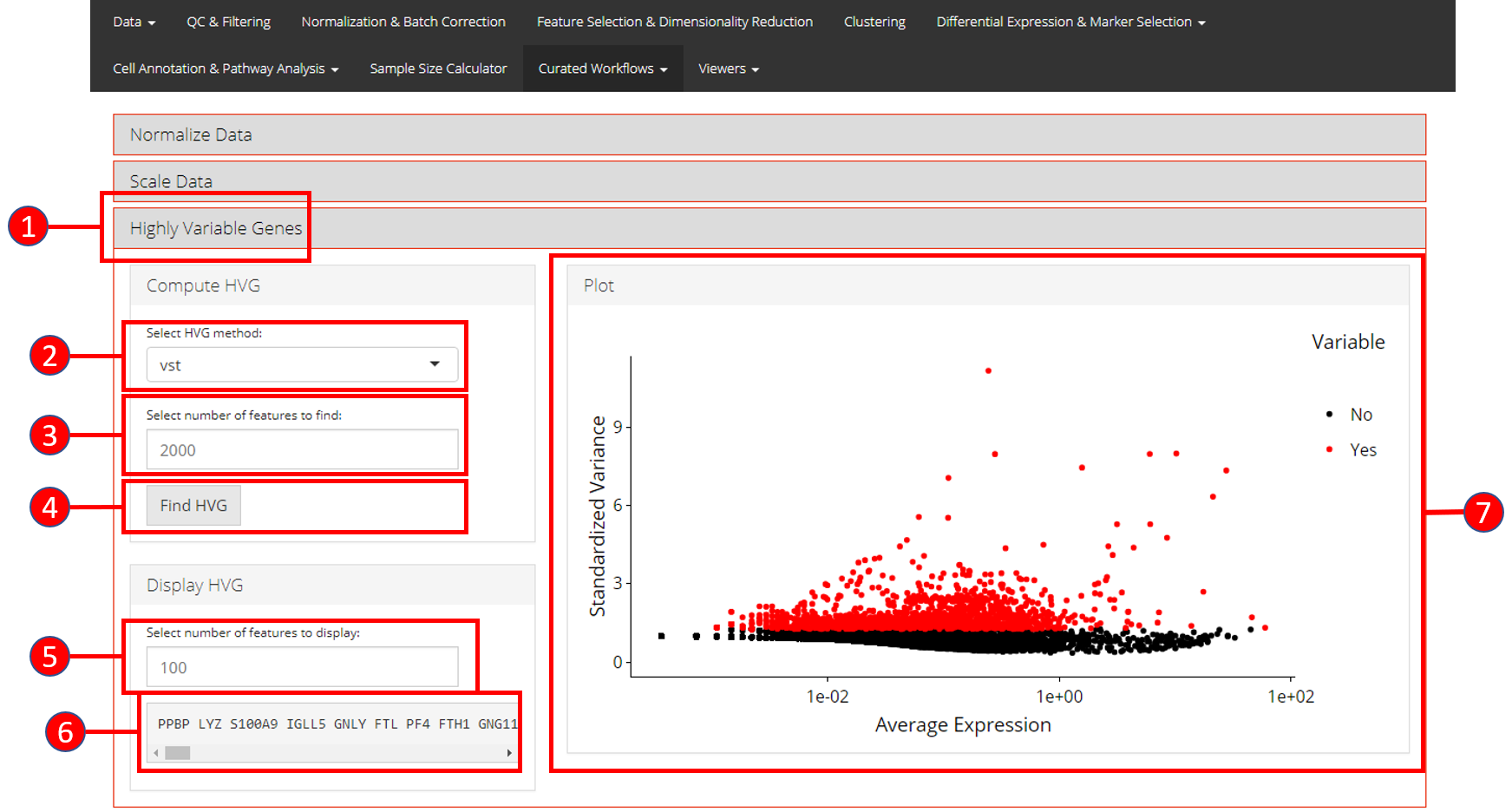 In this tutorial example, we illustrate all the steps of the curated workflow and focus on the options available to manipulate and customize the steps of the workflow as per user requirements. To initiate the Seurat workflow, click on the ‘Curated Workflows’ from the top menu and select Seurat.
