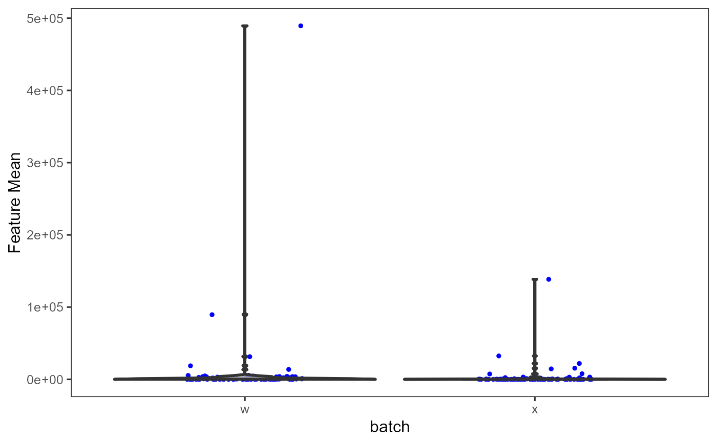 data('sceBatches', package = 'singleCellTK') plotSCEBatchFeatureMean(sceBatches, useAssay = "counts")