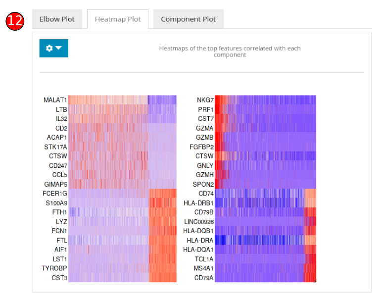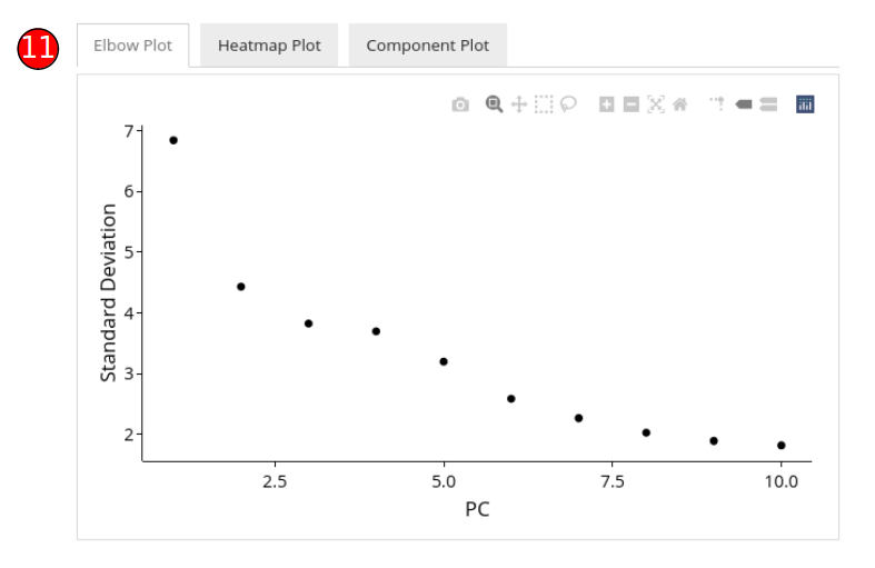 Methods available with the toolkit include PCA from scater [1] package and PCA & ICA from Seurat [2][3][4][5] package. Visualization options available for users include 2D Component Plot, Elbow Plot, JackStraw Plot and Heatmap Plot. A complete list of supported visualization options against each method are specified at the bottom of the tabs below.