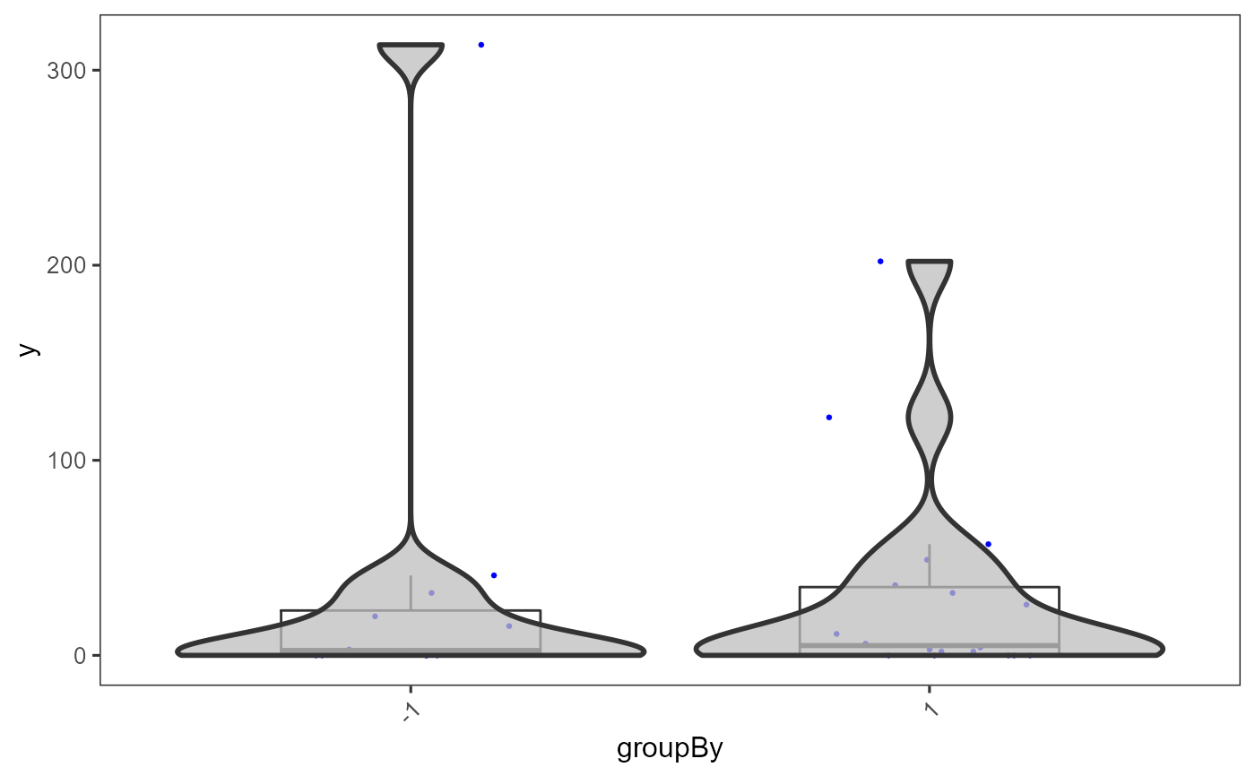 | boxplot | Boolean. If TRUE, will plot boxplots for each violin plot. Default TRUE. |