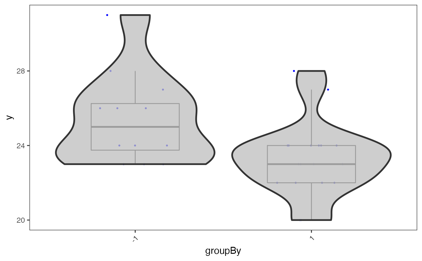 | boxplot | Boolean. If TRUE, will plot boxplots for each violin plot. Default TRUE. |