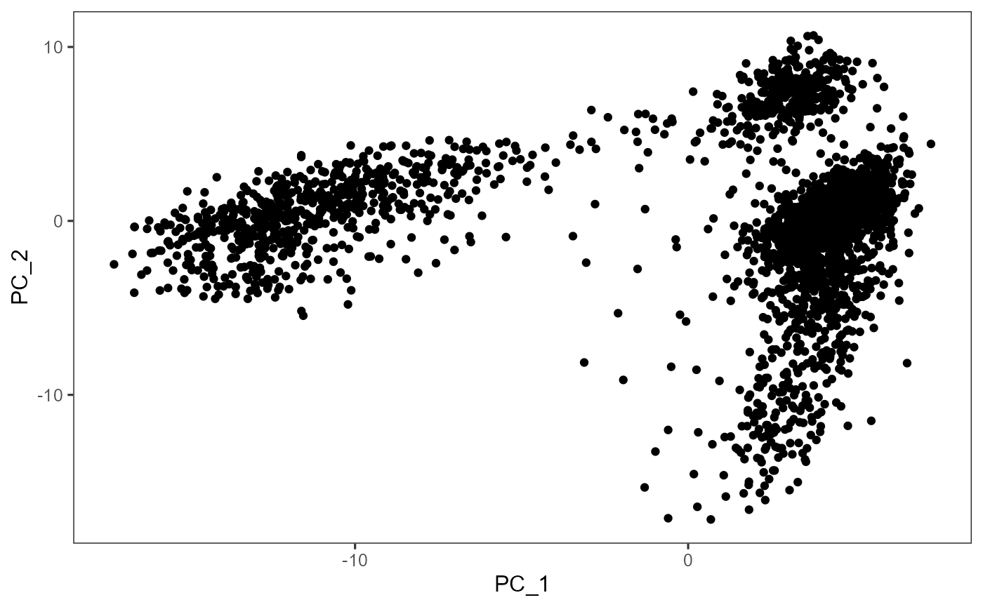sce <- runDimReduce(inSCE = sce, useAssay = "hvg2000", useAltExp = "hvg2000", reducedDimName = "redDimPCA", method = "seuratPCA", nComponents = 10)