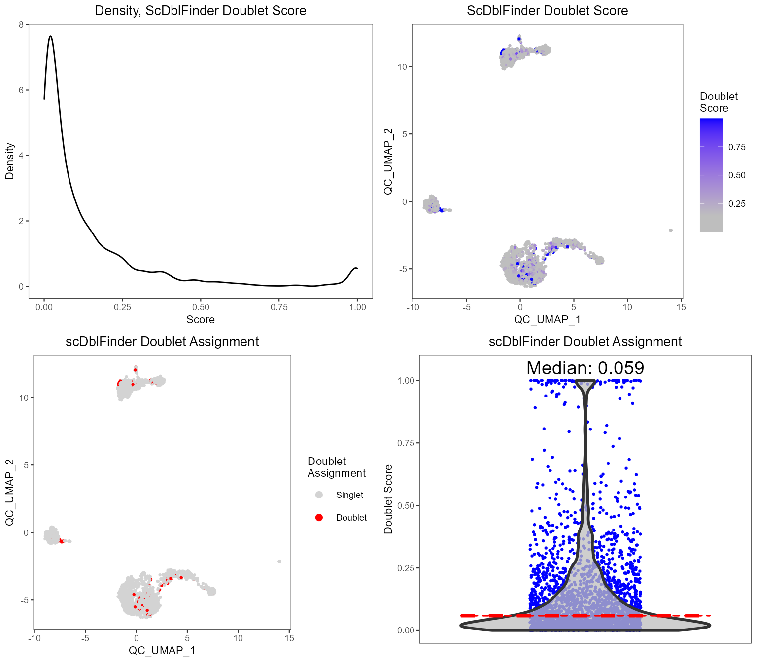 plotScDblFinderResults(sce, reducedDimName = "QC_UMAP")