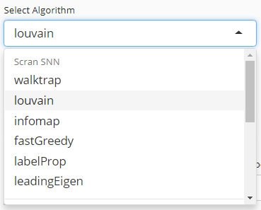 When the selected algorithm belongs to “Scran SNN” group, the parameter settings will look like the figure above. For the choices in the algorithm list, please refer to igraph::cluster_walktrap(), igraph::cluster_louvain(), igraph::cluster_infomap(), igraph::cluster_fast_greedy(), igraph::cluster_label_prop(), and igraph::cluster_leading_eigen().