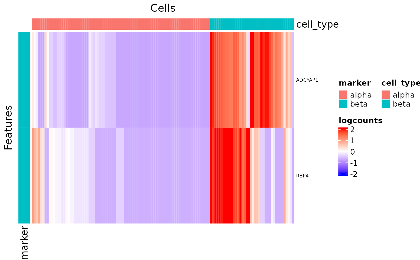 #> Sat Mar 18 10:29:22 2023 ... Identifying markers for cluster 'beta', using DE method 'wilcox'